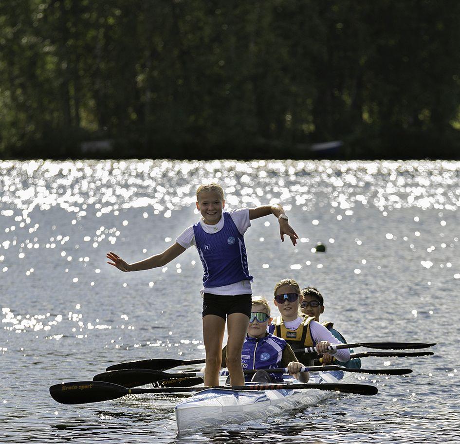 13–15 Iltapäivän ohjelma. Vesiliikuntaa, melontaa ja ulkopelejä.
